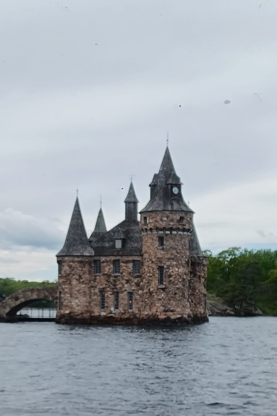 In Kingston haben wir als Nächstes eine Bootstour durch die „1000 Islands“ unternommen. Eigentlich sind es fast 1900 größere und teilweise sehr kleine Inselchen, die zum Teil unbewohnt sind, aber auch mit schönen Häusern oder Schlössern und Burgen bebaut sind. „Boldt Island“ ist eine davon, und die Geschichten über das berühmte „1000 Island Dressing“ gehörten an dem natürlich Tag dazu. Genauso spannend war die kürzeste Brücke der Welt – eine Verbindung zwischen zwei Inselchen. Auf der einen Seite Kanada, auf der anderen Seite die USA.