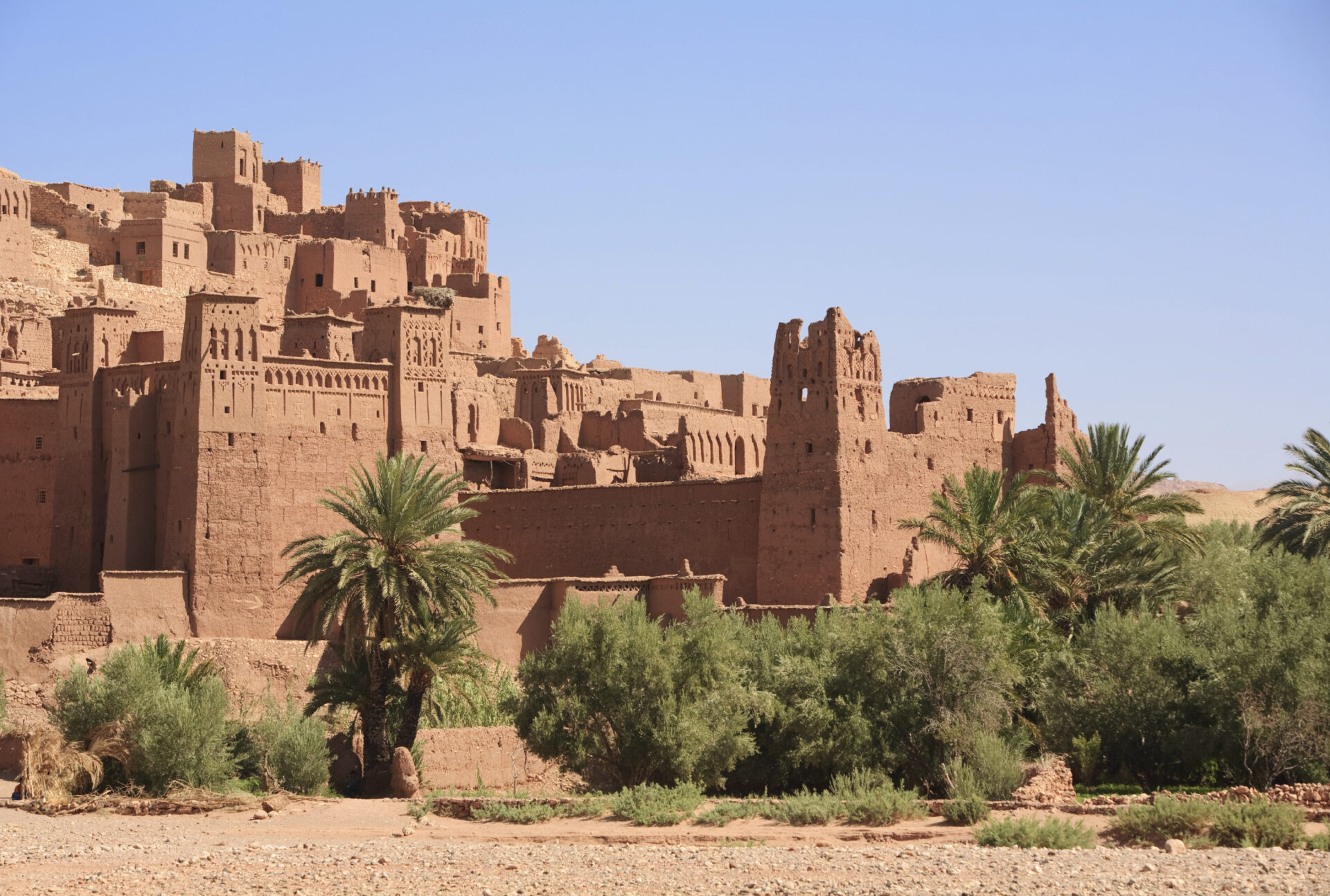 Die heutige Reiseetappe führt Sie über eine der wohl schönsten Straßen Marokkos hinweg über das Atlasgebirge. Genießen Sie den Ausblick auf die immergrünen Hänge des Nord-Atlas, während Sie den gewundenen Serpentinenstraßen über den 2.260 m hohen Pass Tizi n Tichka folgen. Auf der anderen Seite des Passes wird die Gebirgslandschaft rauer und karger, geprägt vom Klima der nahen Sahara. Am Fuße des Atlasgebirges liegt die charmante Stadt Ouarzazate. Unweit von der Stadt erwartet Sie heute das UNESCO-Weltkulturerbe Ait Ben Haddou, das zahlreichen Filmen wie „Gladiator“, „Die Mumie“ oder „Prince of Persia“, aber auch der Serie „Game of Thrones“ als Kulisse diente. Die schöne Lehmziegelstadt blickt auf eine mehr als 1.000 Jahre währende Geschichte zurück, als dieser Ort ein wichtiges Ziel der Karawanenroute war, und bezaubert mit ihrer einzigartigen Architektur aus verwinkelten Wohnhäusern, traditionellen Ecktürmen und weitläufigen Innenhöfen. Vertiefen Sie diesen faszinierenden Einblick in die Vergangenheit bei einem Besuch der als „Kasbahs“ bekannten Lehmburgen von Tifoultoute und Taourirt, die mit prachtvollen Ornamenten und Mosaiken locken. (F A)